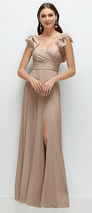 From classic to bohemian weddings, nude bridesmaid dresses can be an earthy yet elegant addition. Nude dresses look gorgeous on both light and dark skin tones alike. Whether you're going for a soft beige or a deep chocolate brown, these warm hues are a dreamy choice for weddings year-round.