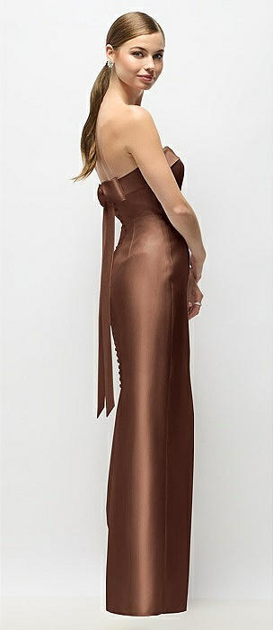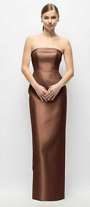 Strapless Cuff Satin Maxi Dress with Column Skirt & Back Bow in cognac
