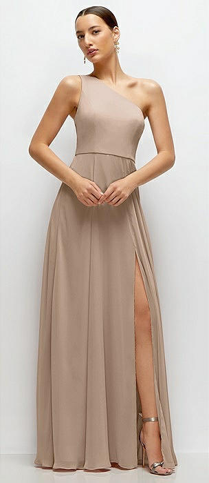 One-Shoulder Draped Cowl A-Line Satin Maxi Dress in toffee