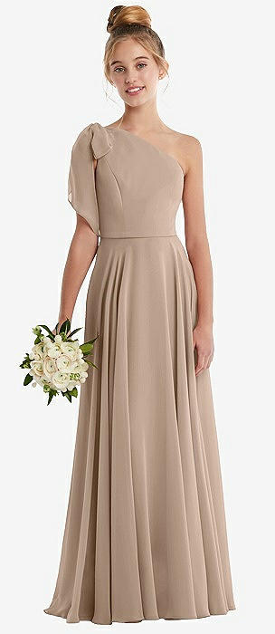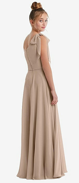 Tie Shoulder Empire Waist Junior Bridesmaid Dress in toasted sugar