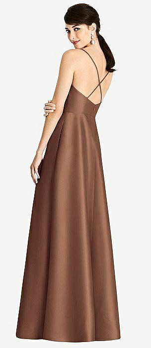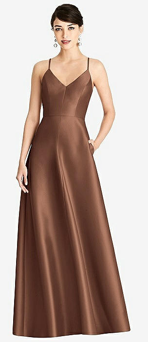 Sleeveless A-Line Satin Dress with Pockets in cognac