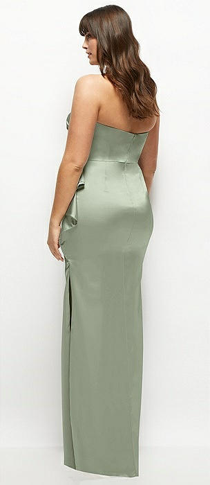 Strapless Draped Skirt Satin Maxi Dress with Cascade Ruffle in sage