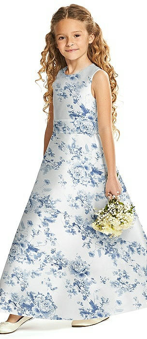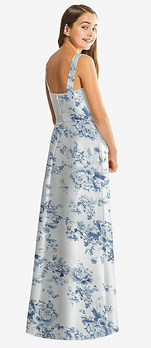 Floral Sleeveless Open-Back Satin Junior Bridesmaid Dress in cottage rose larkspur