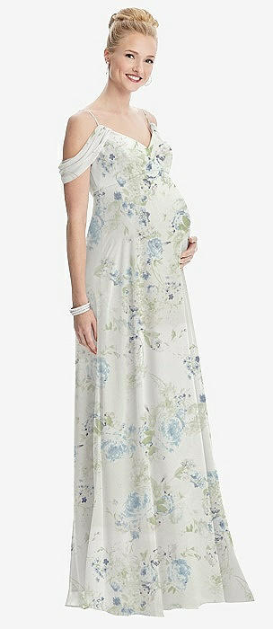 One-Shoulder Draped Chiffon Maxi Dress - Dani in cloudy