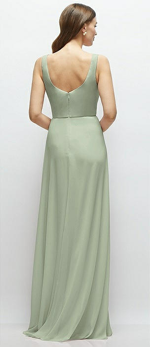 Square Neck Chiffon Maxi Dress with Circle Skirt in sage