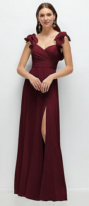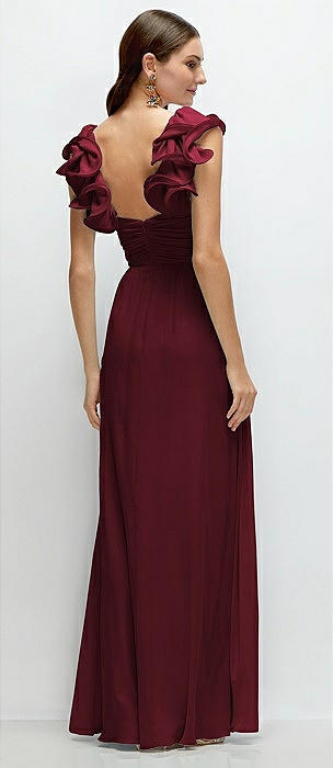 Dramatic Ruffle Edge Strap Chiffon Maxi Dress in cabernet
