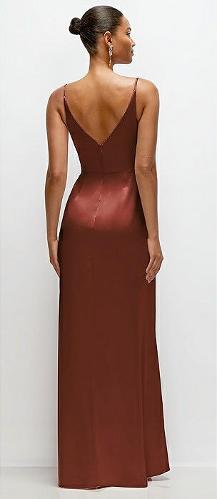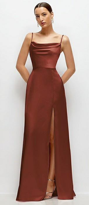 Cowl Neck Satin Maxi Dress with Adjustable Spaghetti Straps in auburn moon
