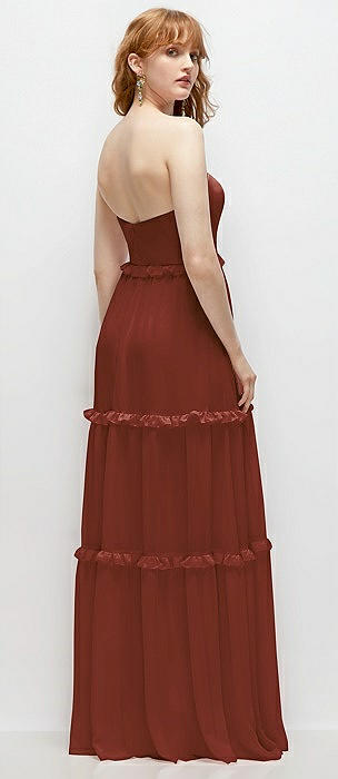 Bustier-Style Chiffon Tiered Ruffle Maxi Dress with Adjustable Straps in auburn moon