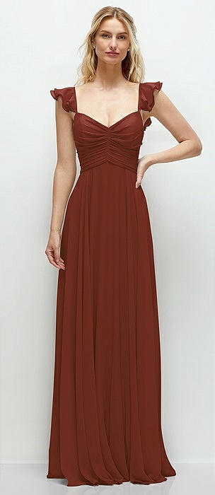 Ruffle Strap Chiffon Bustier Maxi Dress with Ruffle Hem A-Line Skirt in auburn moon