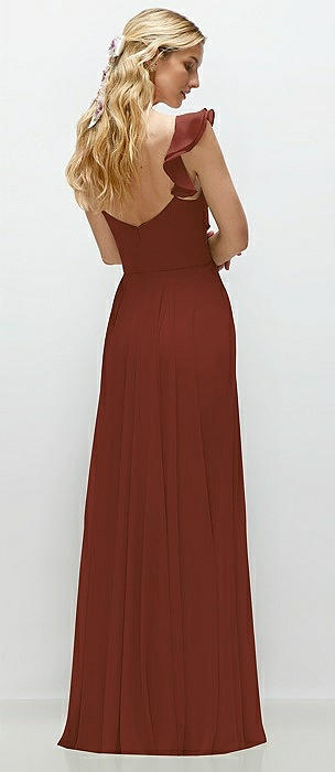 Dramatic Ruffle Edge Strap Chiffon Maxi Dress in auburn moon