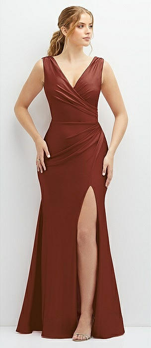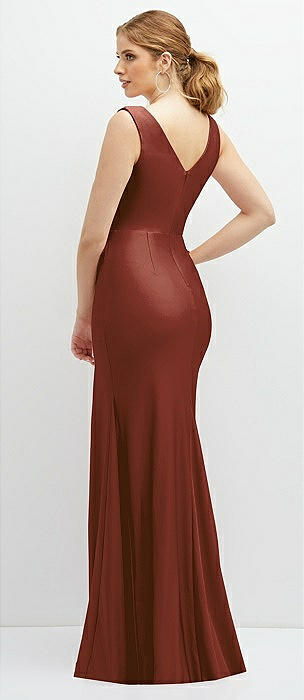 Deep V-Neck Stretch Satin Mermaid Dress with Slight Train in auburn moon