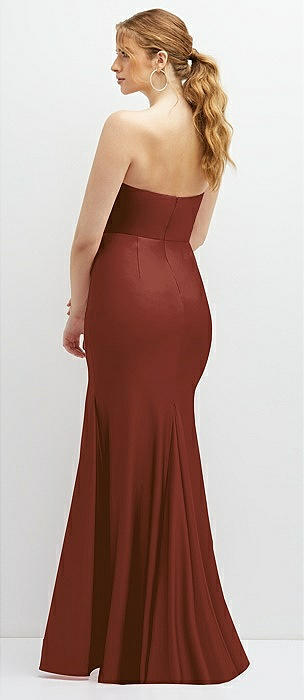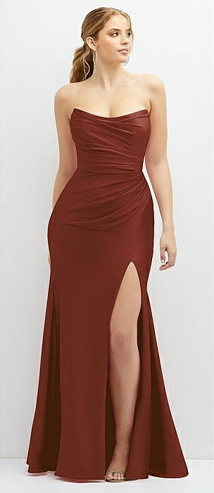 Strapless Basque-Neck Draped Stretch Satin Mermaid Dress with Horsehair Hem in auburn moon