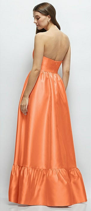 Strapless Satin Column Dress with Back Slit in portofino orange