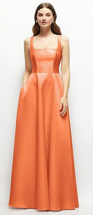 Square-Neck Satin Maxi Dress with Full Skirt in portofino orange