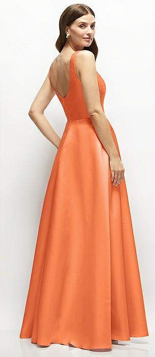 Scoop Neck Drop Basque Skirt Satin Maxi Dress with Pockets in portofino orange
