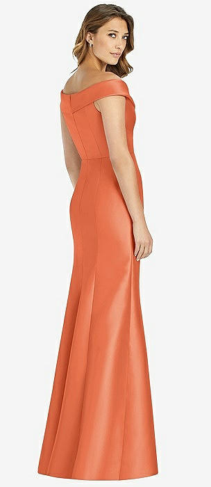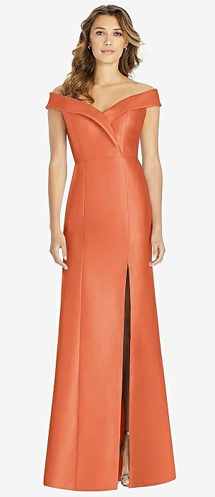 Off-the-Shoulder Cuff Trumpet Gown with Front Slit in portofino orange