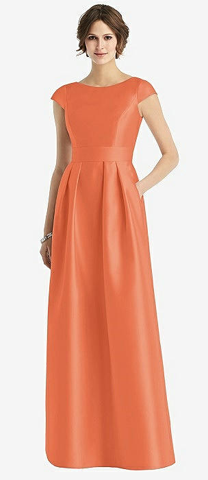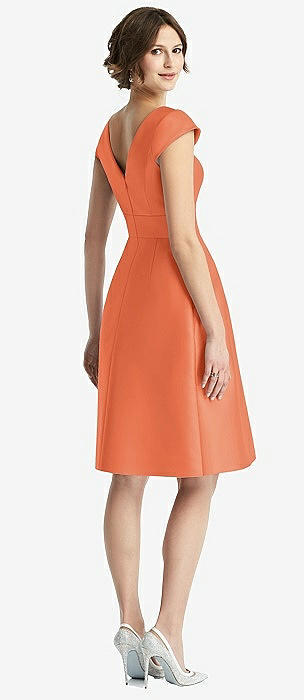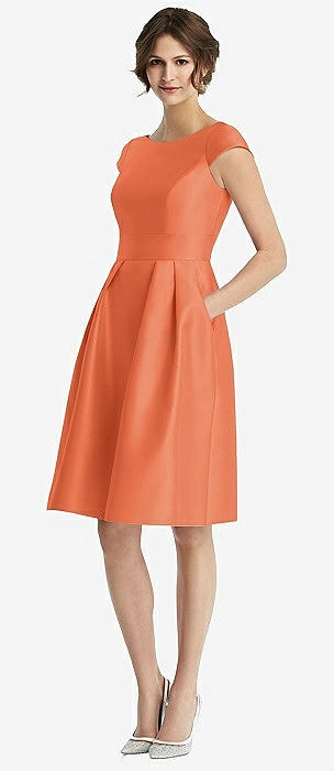 Cap Sleeve Pleated Cocktail Dress with Pockets in portofino orange