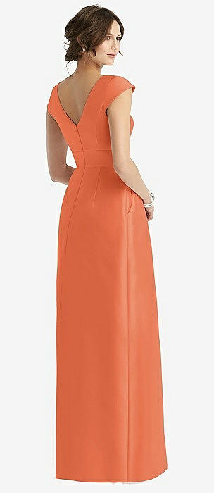 Open Neckline Cutout Satin Twill A-Line Gown with Pockets in portofino orange