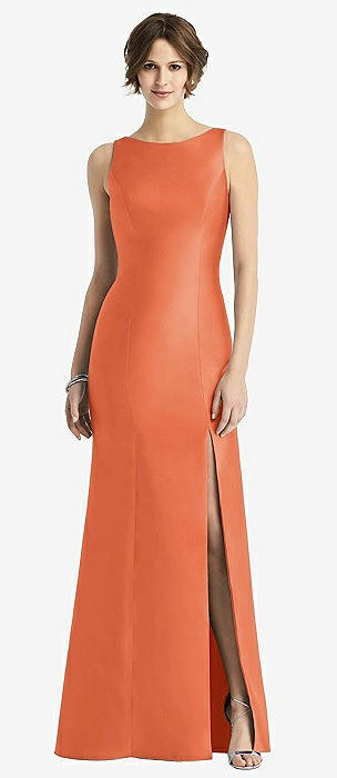 Jewel Neck Bowed Open-Back Trumpet Dress with Front Slit in portofino orange