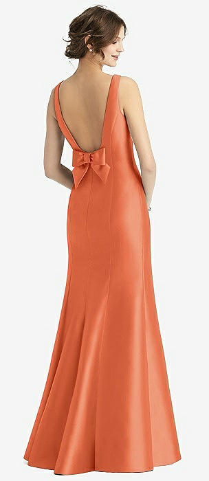 Sleeveless Satin Trumpet Gown with Bow at Open-Back in portofino orange