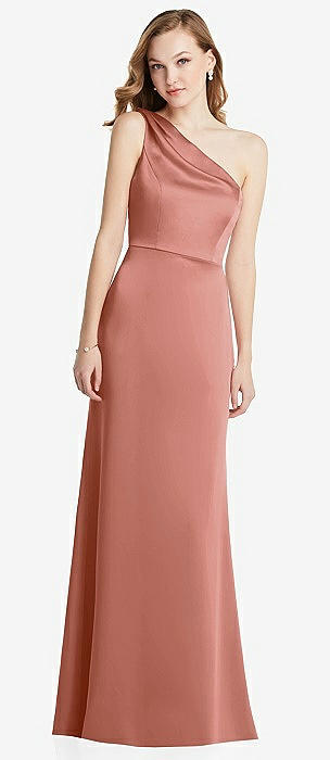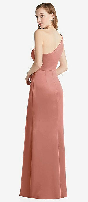 Shirred One-Shoulder Satin Trumpet Dress - Maddie in desert rose