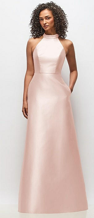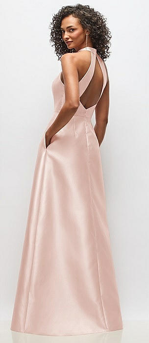 High-Neck Cutout Satin Dress with Pockets in blush