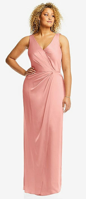 Faux Wrap Whisper Satin Maxi Dress with Draped Tulip Skirt in rose