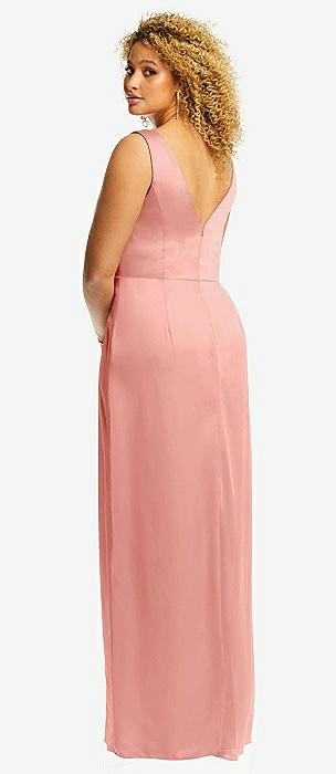 Basque-Neck Satin Column Maxi Dress with Off-the-Shoulder Bows in blush