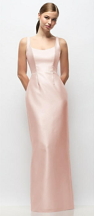 Scoop Neck Draped Column Stretch Satin Maxi Dress in ballet pink