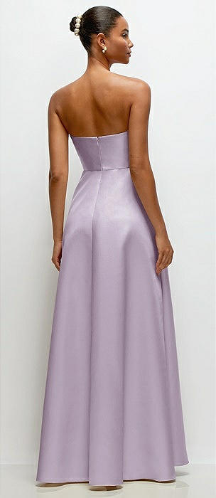 Strapless Satin Column Dress with Back Slit in lilac haze