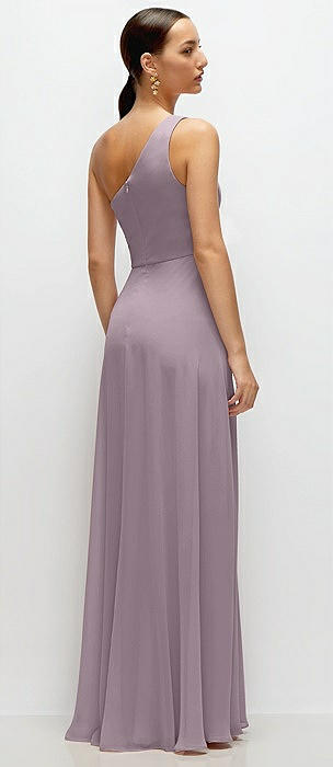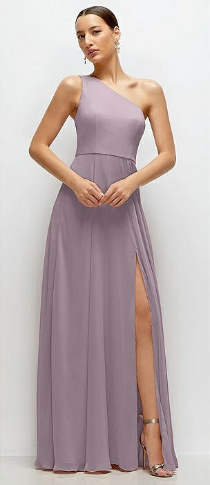 Chiffon One-Shoulder Maxi Dress with Circle Skirt in lilac dusk