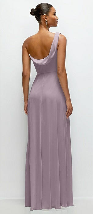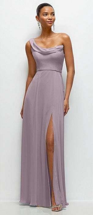Chiffon One-Shoulder Maxi Dress with Draped Cowl Neckline in lilac dusk