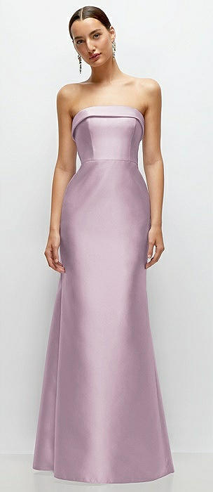 Strapless Cuff Neckline Satin Trumpet Gown in suede rose