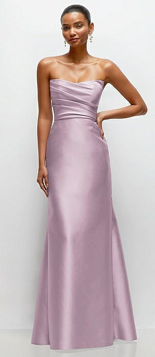 Strapless Cat-Eye Draped Bodice Satin Tumpet Dress in suede rose