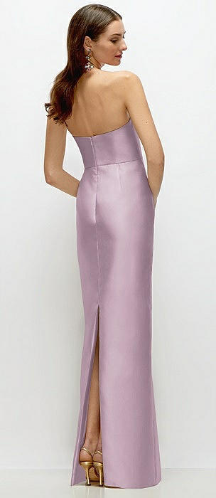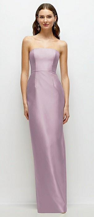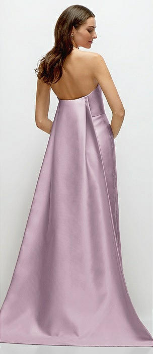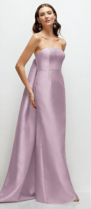 Strapless Satin Column Dress with Removeable Watteau Train in suede rose