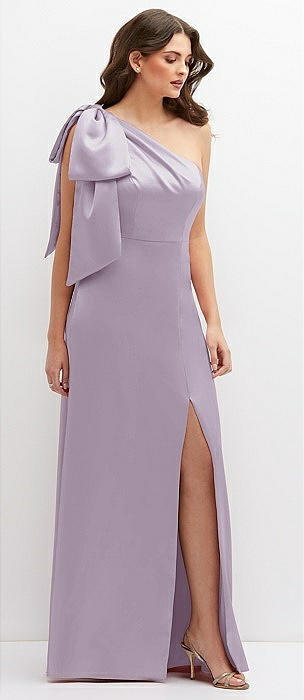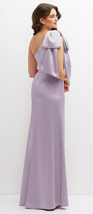 Cascading Bow One-Shoulder Stretch Satin Mermaid Dress with Slight Train in pale purple