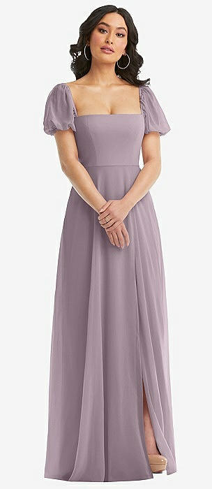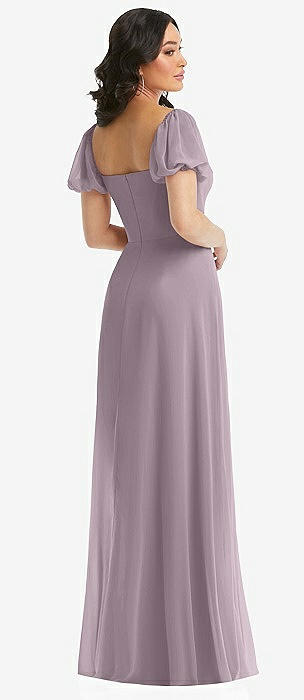 One-Shoulder Puff Sleeve Maxi Bias Dress with Side Slit in pale purple