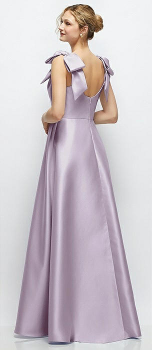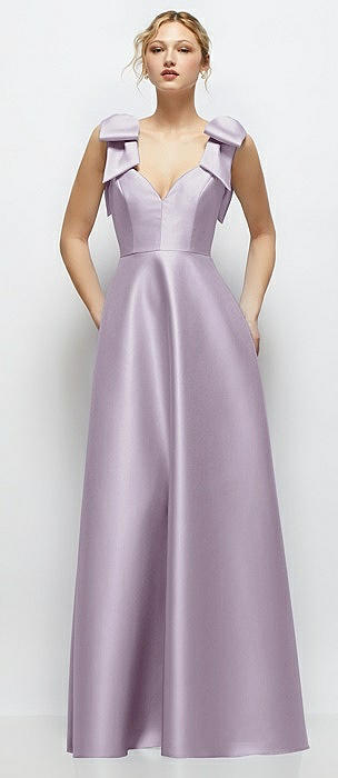 Deep V-Neck Satin Ball Gown with Shoulder Bows in lilac haze