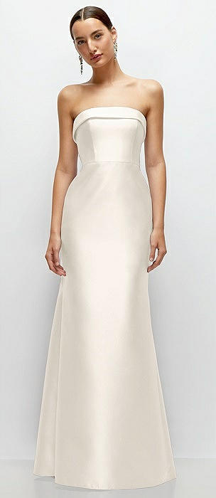 Strapless Cuff Neckline Satin Trumpet Gown in ivory