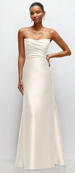 Strapless Cat-Eye Draped Bodice Satin Tumpet Dress in ivory