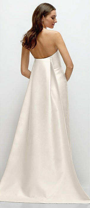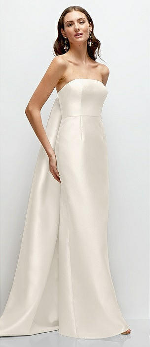 Strapless Satin Column Dress with Removeable Watteau Train in ivory