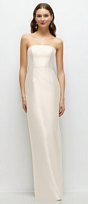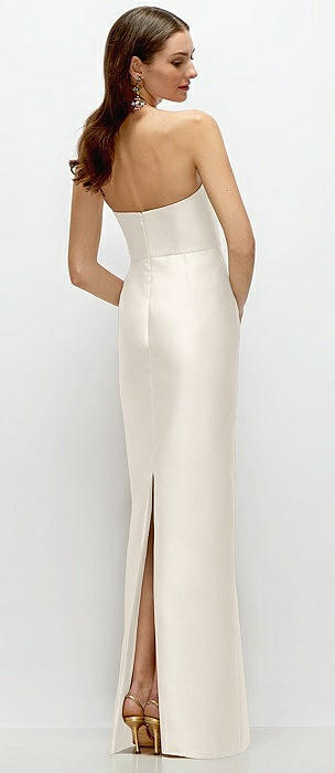 Strapless Satin Column Dress with Back Slit in ivory