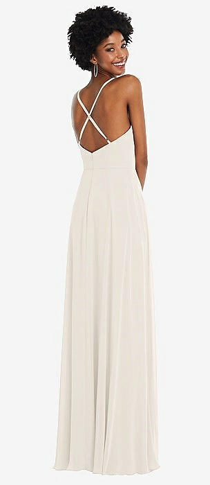 Low Tie-Back Maxi Dress with Adjustable Skinny Straps in ivory