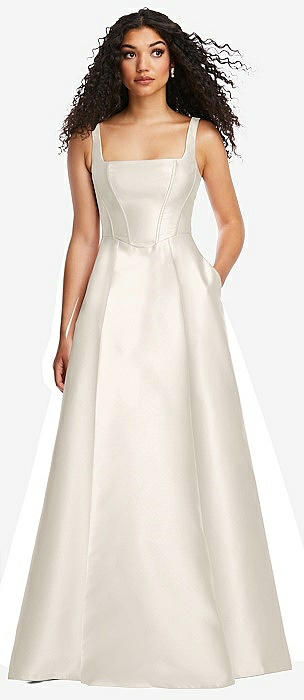 Sleeveless Square-Neck Princess Line Gown with Pockets in ivory
