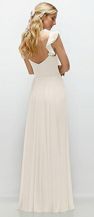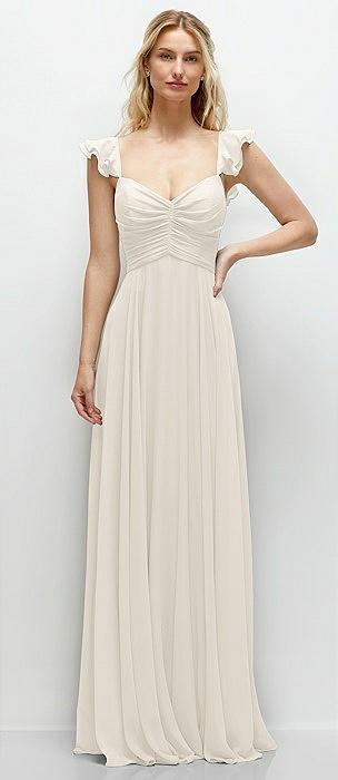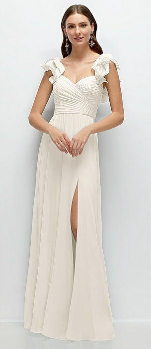 Convertible Ruffle Strap Chiffon Maxi Dress with Full Circle Skirt in ivory