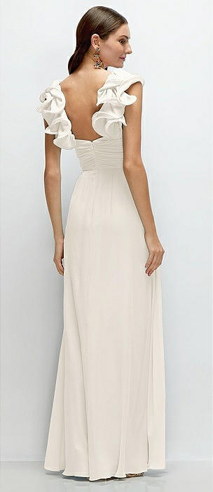 Dramatic Ruffle Edge Strap Chiffon Maxi Dress in ivory