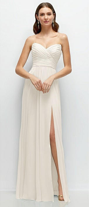 Strapless Pleated Surplice Chiffon Maxi Dress with A-Line Skirt in ivory