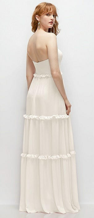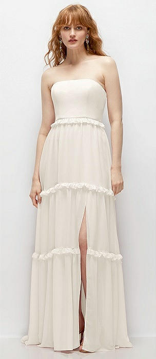 Strapless Chiffon Maxi Dress with Tiered Micro Ruffle Full Skirt in ivory