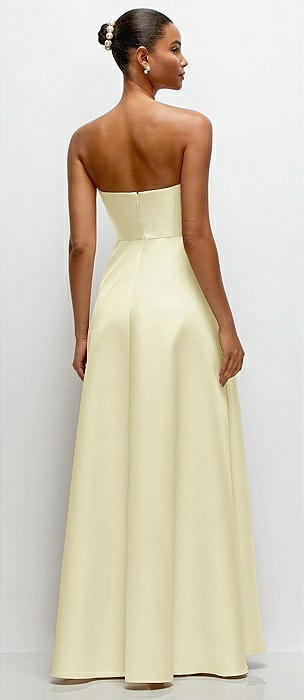 Strapless Satin Column Dress with Back Slit in butter yellow