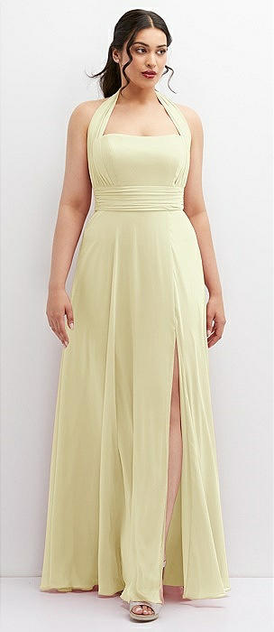 Diamond Halter Maxi Dress with Adjustable Straps in butter yellow